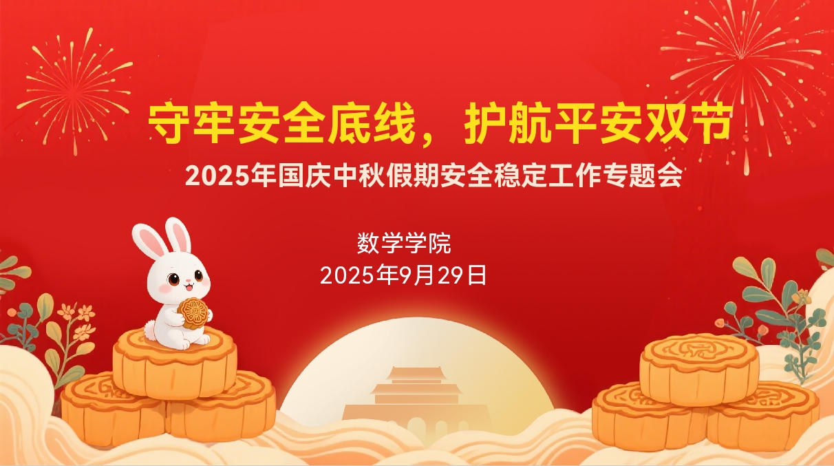 9月29日,数学学院以线上形式召开2025年国庆中秋假期安全稳定工作专题会议,全面部署双节期间安全稳定工作,筑牢师生假期安全防线。学院全体教职工参会,会议由党总支副书记余宏旺主持。