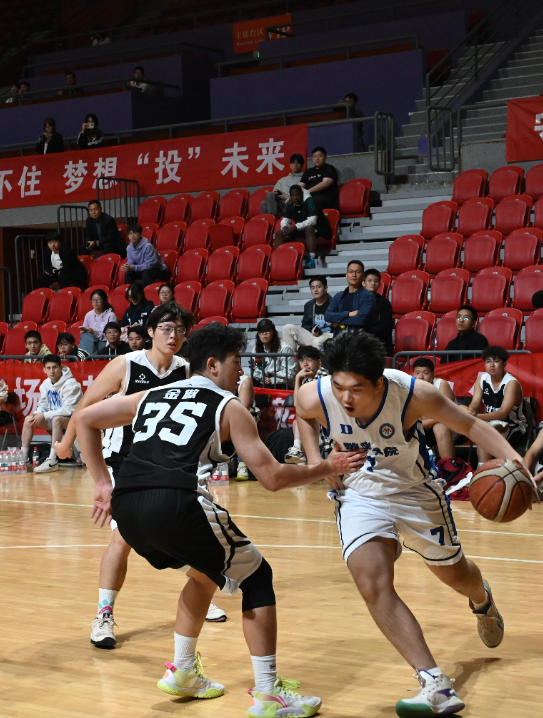 赛场边,数院啦啦队活力满格,统一队服搭配动感舞蹈、响亮呐喊,为队员注入能量;加油团手持院旗、高举标语,“数分高下,球场争霸”的口号响彻体育馆。球队冲锋、助威团护航,所有人同心协力,让数院凝聚力熠熠生辉。