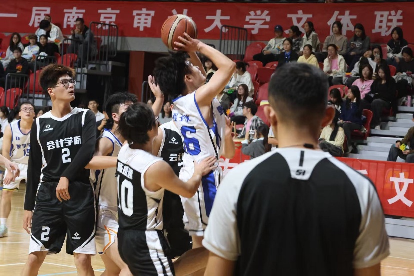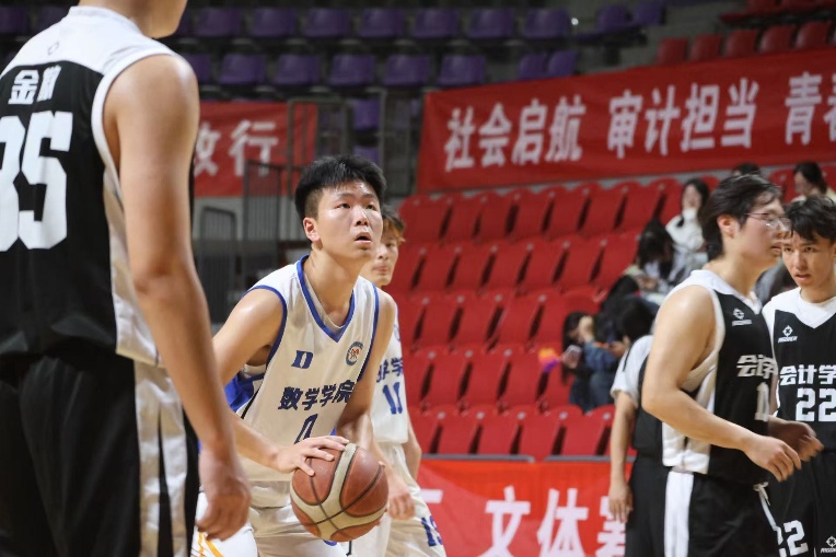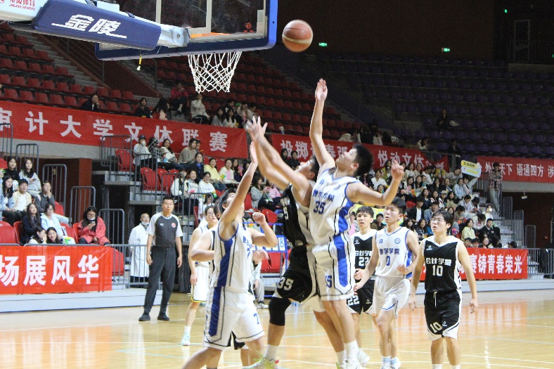 晚上6点,文体联赛学生组揭幕战在体育健身中心主馆开赛,数学学院篮球队与会计学院篮球队狭路相逢,奉献了一场扣人心弦的巅峰对决。