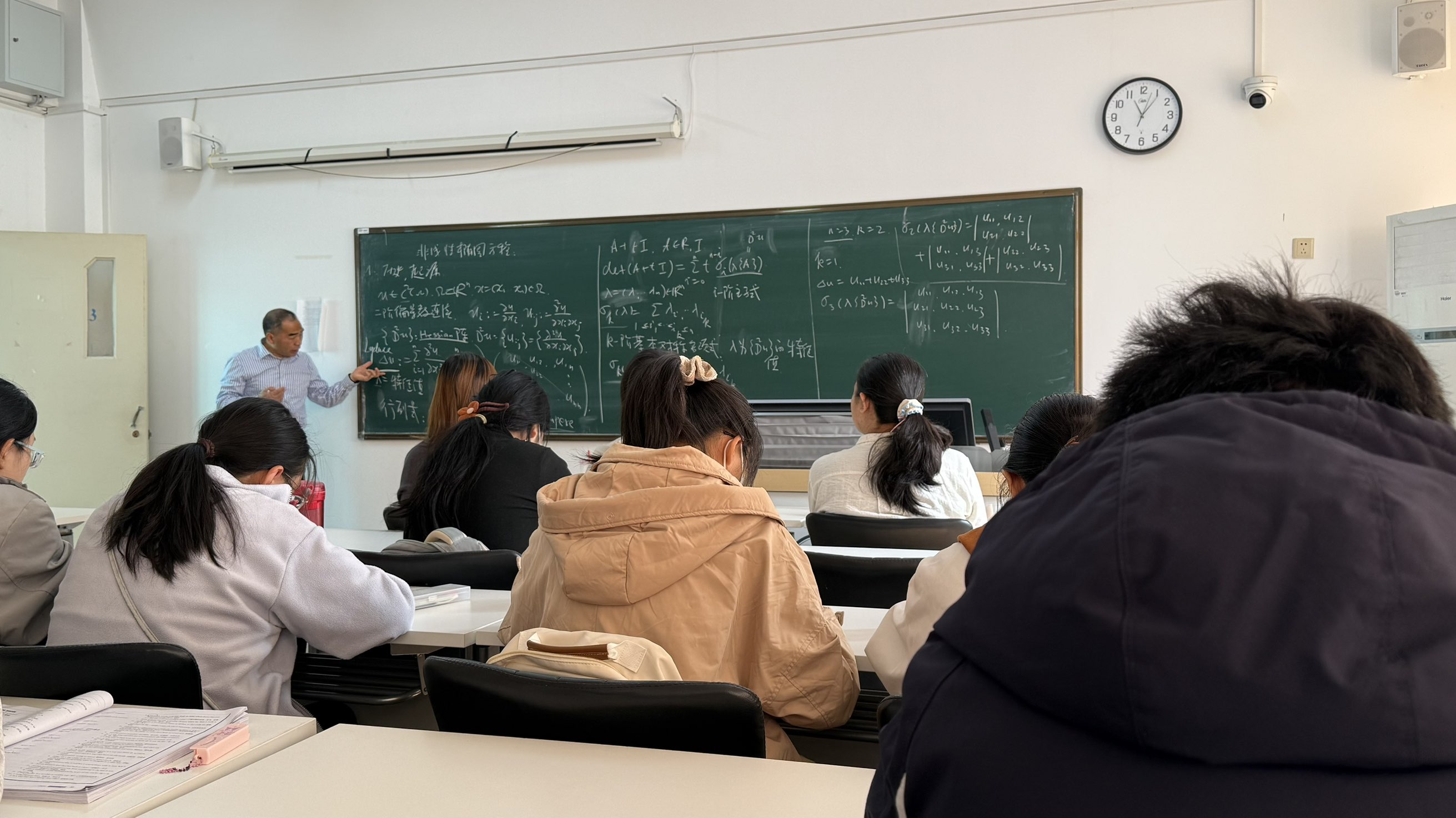 在本次报告中,麻希南教授首先系统梳理了Nirenberg、Pogorelov与丘成桐等学者在完全非线性椭圆偏微分方程领域的重要贡献,并介绍了该方向的研究背景。随后,他重点阐述了Caffarelli-Nirenberg-Spruck的五篇系列经典成果,并分享了自己近年来在该领域所取得的研究进展。整场报告中,麻教授论证严谨、板书工整,展现出渊博的学识与对数学研究的执着与热忱,给在场师生留下了深刻印象。