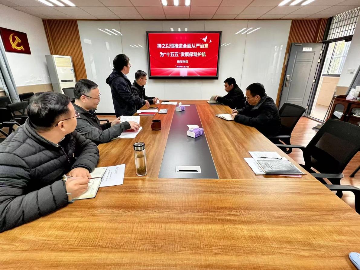 为深入学习贯彻党的二十届四中全会精神,持之以恒推进全面从严治党,2025年11月24日,数学学院于位育楼217会议室召开全面从严治党专题会议,旨在为学院“十五五”发展提供坚实的政治保障。学院领导班子成员、各科室负责人参加会议。会议由学院党委副书记余宏旺主持。
