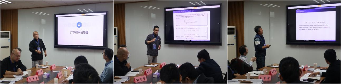 本次研讨会分为两个阶段。第一阶段为概率统计学术研讨会,何辉教授、王汉超教授、徐方军教授、申广君教授、鲁大伟教授分别围绕反应扩散方程、随机矩阵理论、概率极限理论、随机微分方程及产学研平台构建等前沿方向分享了最新研究成果,报告内容兼具理论深度与应用价值,引发了与会学者的热烈讨论,现场学术氛围浓厚。