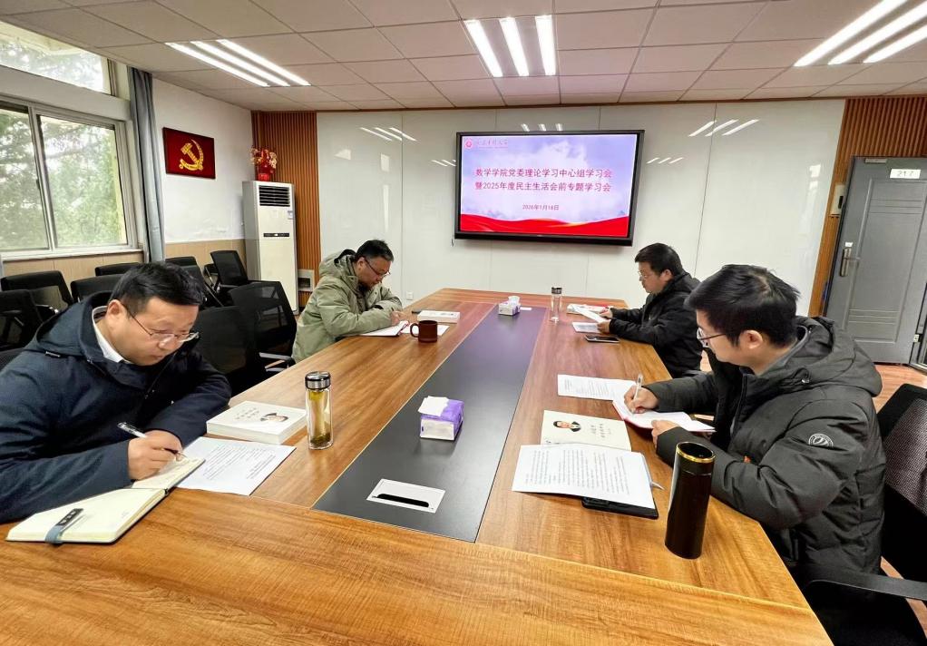 为高质量开好2025年度民主生活会,筑牢思想根基,汇聚发展力量,数学学院党委于2026年1月18日上午在位育楼217会议室召开2026年第一期党委理论学习中心组学习会暨2025年度民主生活会前专题学习会,学院班子成员参加会议,会议由学院党委副书记余宏旺主持。