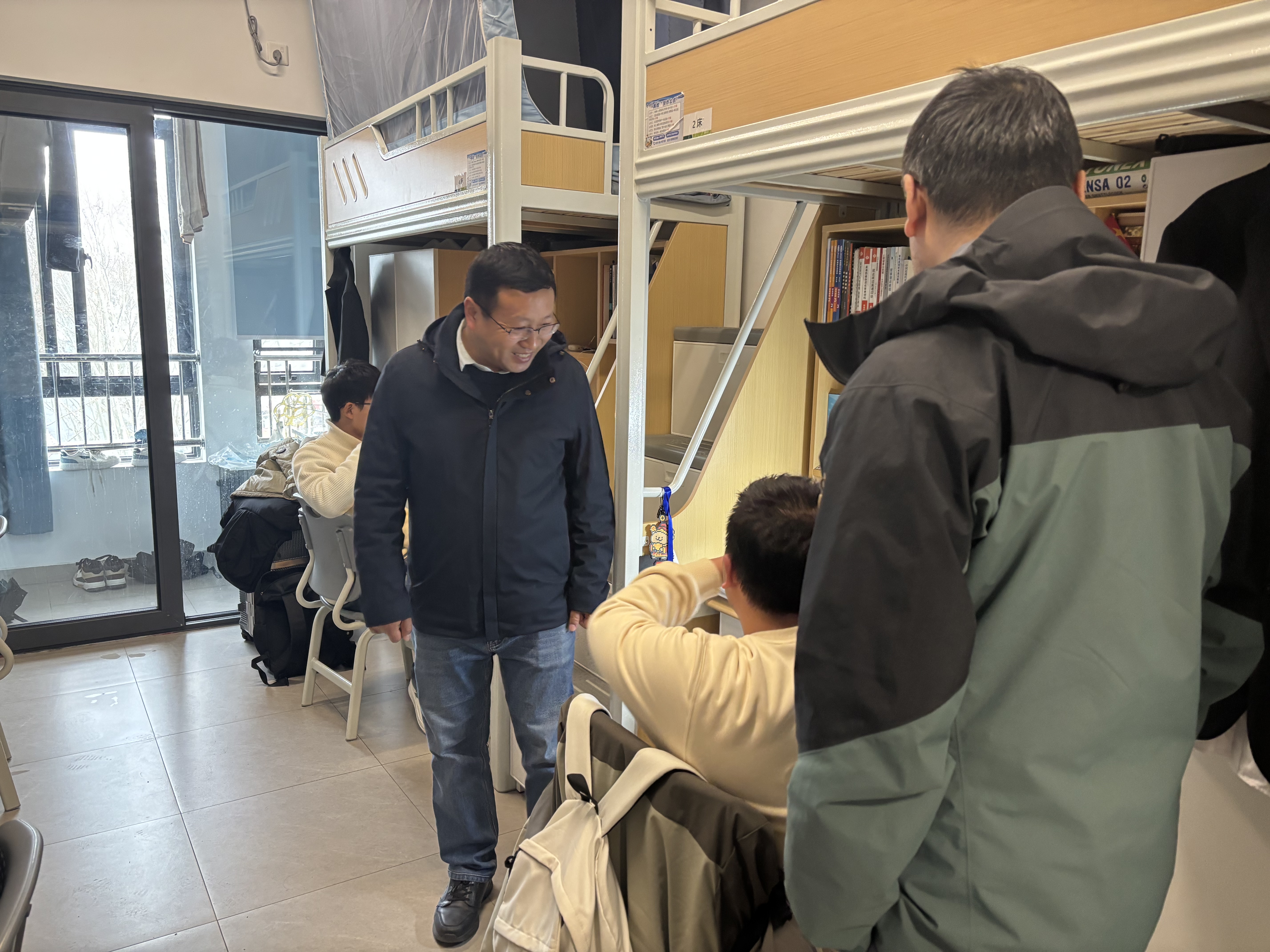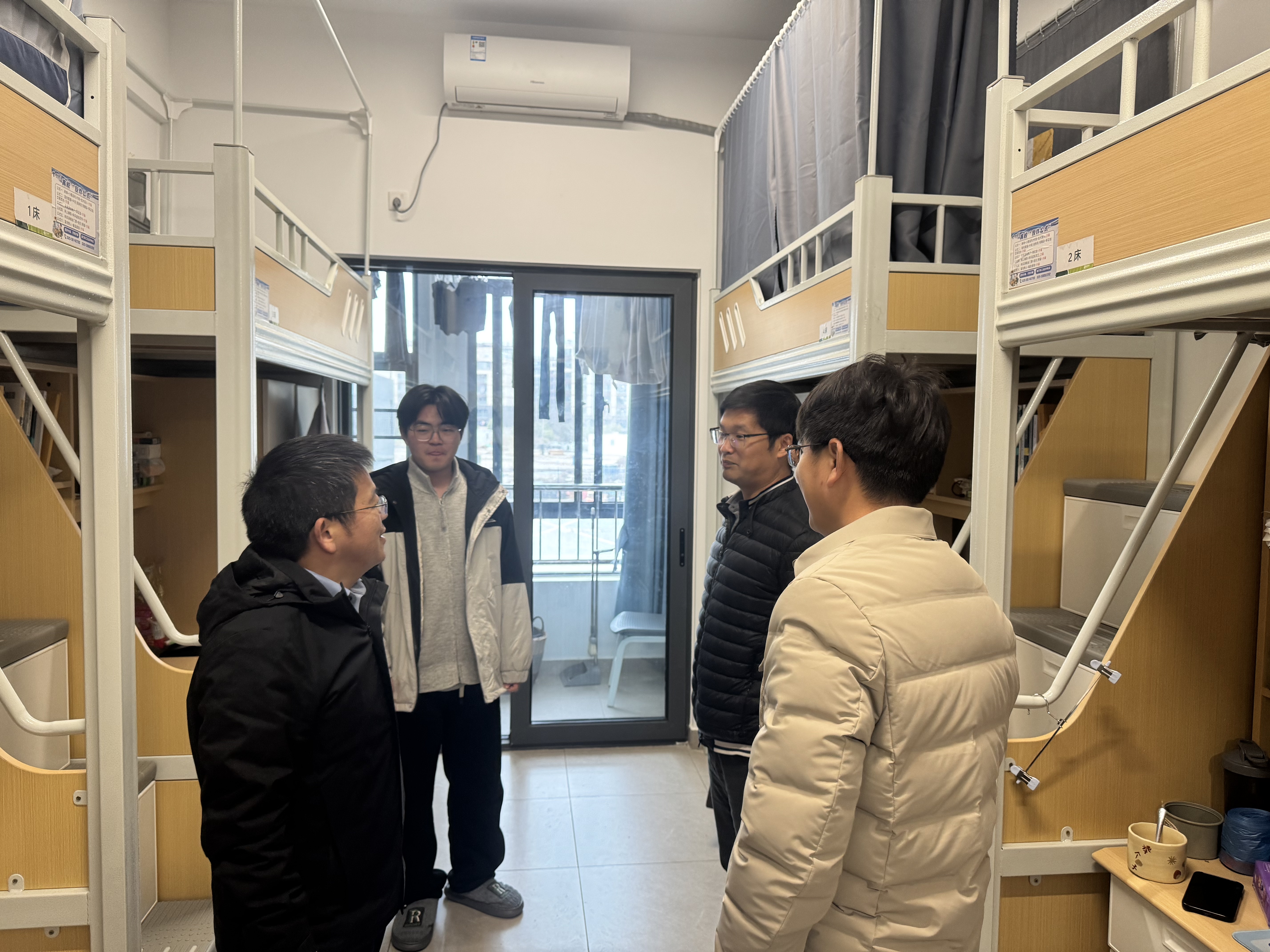 学院院长杨洋、党委副书记余宏旺、副院长唐东磊、副院长尤国桥四位学院领导带队,与系主任薛帅帅、刘桂东、班主任苏东、李琪、辅导员何小云多位老师一同走进学生宿舍。老师们与同学们亲切交谈,细致询问假期生活、返校行程、新学期学习规划以及生活上的需求,认真倾听同学们的心声,并对大家提出的问题给予耐心解答和记录。走访中,老师们还特别叮嘱同学们要尽快调整状态,以饱满的精神面貌迎接新学期的学习挑战。