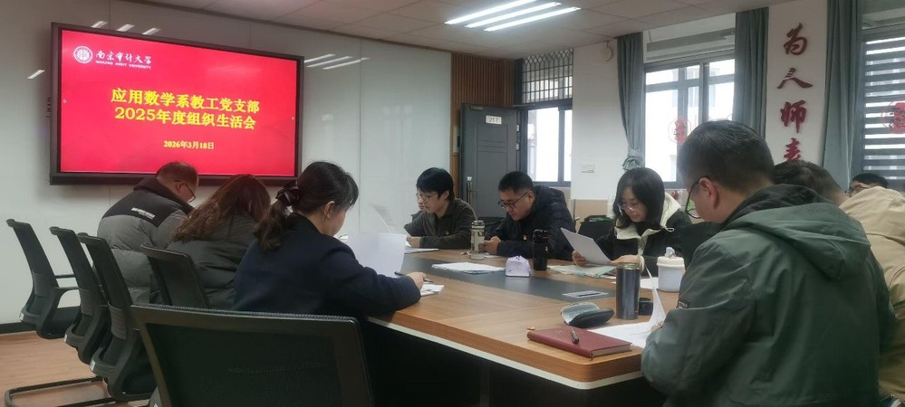 为深入学习贯彻习近平新时代中国特色社会主义思想,切实把党的二十届四中全会精神与全国两会精神转化为推动学院事业发展的实际行动,2026年3月18日下午,数学学院应用数学系教工党支部在位育楼217会议室召开2025年度组织生活会暨民主评议党员会议,紧扣巡察整改要求,扎实开展理论学习、批评与自我批评、民主测评等工作。支部全体党员参加,会议由支部书记薛帅帅主持。